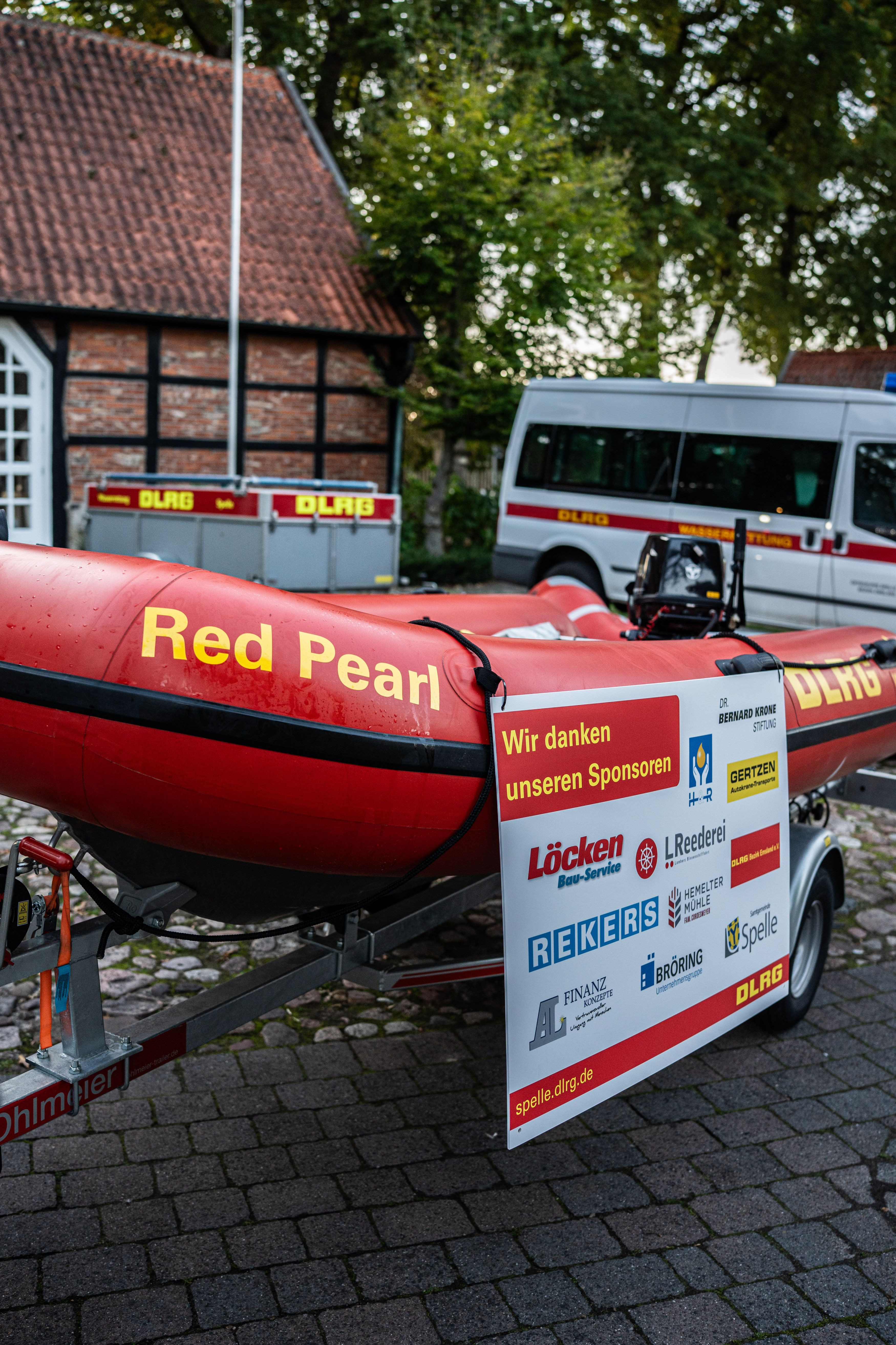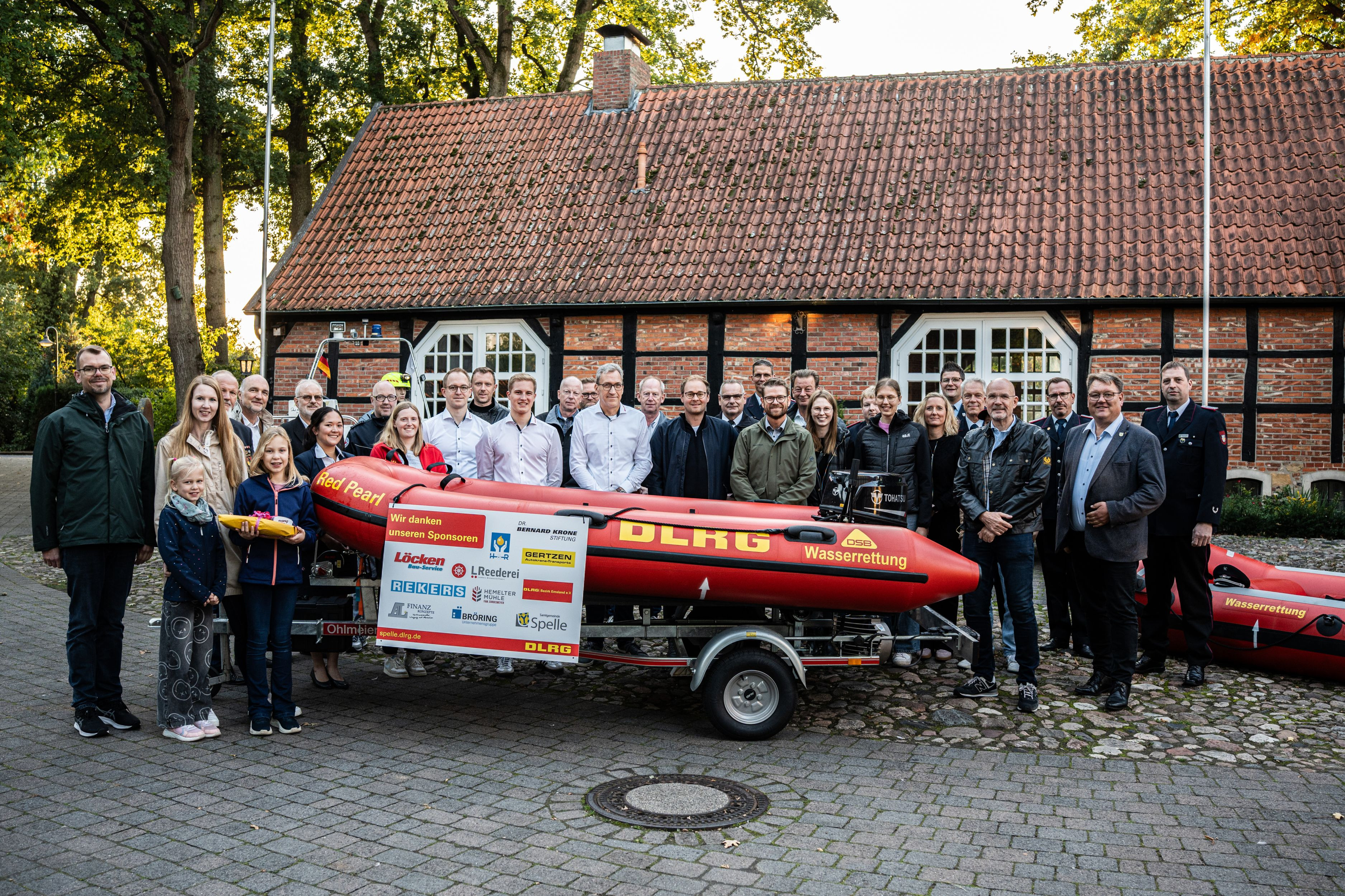Die DLRG Ortsgruppe Spelle bedankt sich herzlich bei allen Spendern und Unterstützern: Dr. Bernard Krone Stiftung, Rekers Betonwerk, Samtgemeinde Spelle, Gertzen Krane und Transporte, LReederei, DLRG Bezirk Emsland, Hemelter Mühle, Bröring Unternehmensgruppe, Löcken Bauservice, H+R und AL Finanzkonzepte. Nur durch diese großzügigen Beiträge konnte die Anschaffung des neuen Rettungsbootes realisiert werden.
