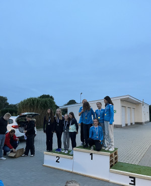 Nach einer Pause ging es weiter mit den Mannschaftswettkämpfen. Dabei erkämpften sich unsere 2 Teams ebenfalls Treppchenplätze. So belegte unsere AK 12 weiblich (Emma Kien, Lena Kurmann, Mia Kurmann, Misan Hafiz) den 2. Platz und unsere AK 17/18 weiblich (Hermine Felix, Gesa Rauen, Malin Lünnemann, Sina Morhaus, Yasemine Wilp) den 1. Platz. Auch Pepe Wolters, der spontan in der AK 10 m Mannschaft der Ortsgruppe Weener aushalf, belegte mit diesem Team den 1. Platz.